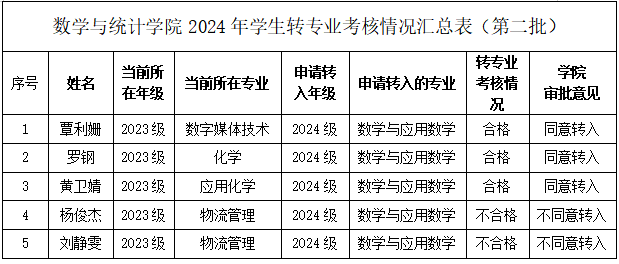 于5月24日组织了第二次转专业考核。经考核小组审定,院长办公会议讨论,党政联席会议研究确定,现拟推荐3人转入数学与应用数学专业。现将转专业考核情况(第二批)予以公示,公示时间为5月26日至28日。若对转专业考核结果(第二批)有异议,请于5月28日之前实名向 girsway