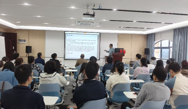 的邀请,湘潭大学李继春教授为学院师生作了题为“超材料与石墨烯中麦克斯韦方程的有限元分析及数值模拟”的学术报告。报告由数统学院黄在堂院长主持,全体学术型研究生参与了此次学术活动。