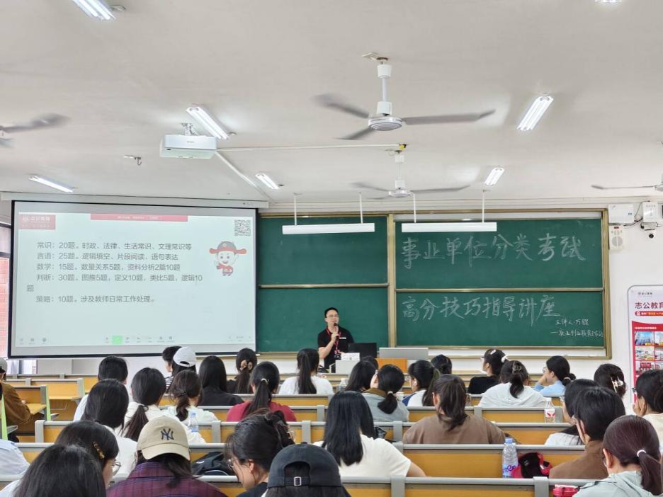 为助力2022级应届毕业生备战事业单位考试,提升职业能力测验应试水平,学校于3月25日下午在实验2A-301教室顺利举办事业单位分类考试高分技巧指导讲座。本次讲座由学生就业中心主办, girsway