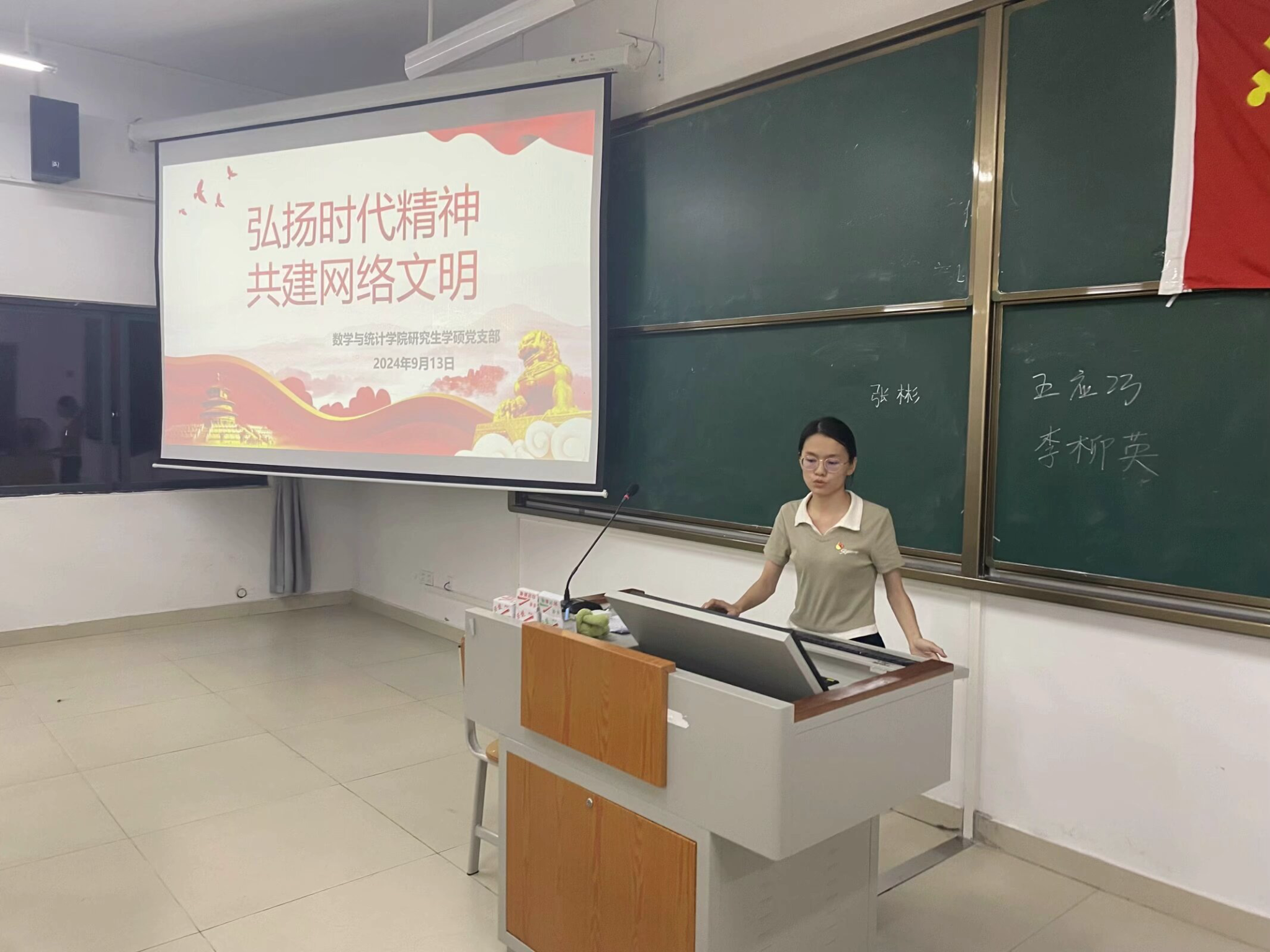 研究生学硕党支部在2号实验楼-A104室组织开展“弘扬时代精神,共建网络文明”主题党日活动。此次党课由支部书记罗海燕同志主持,研究生学硕党支部全体成员参加。
