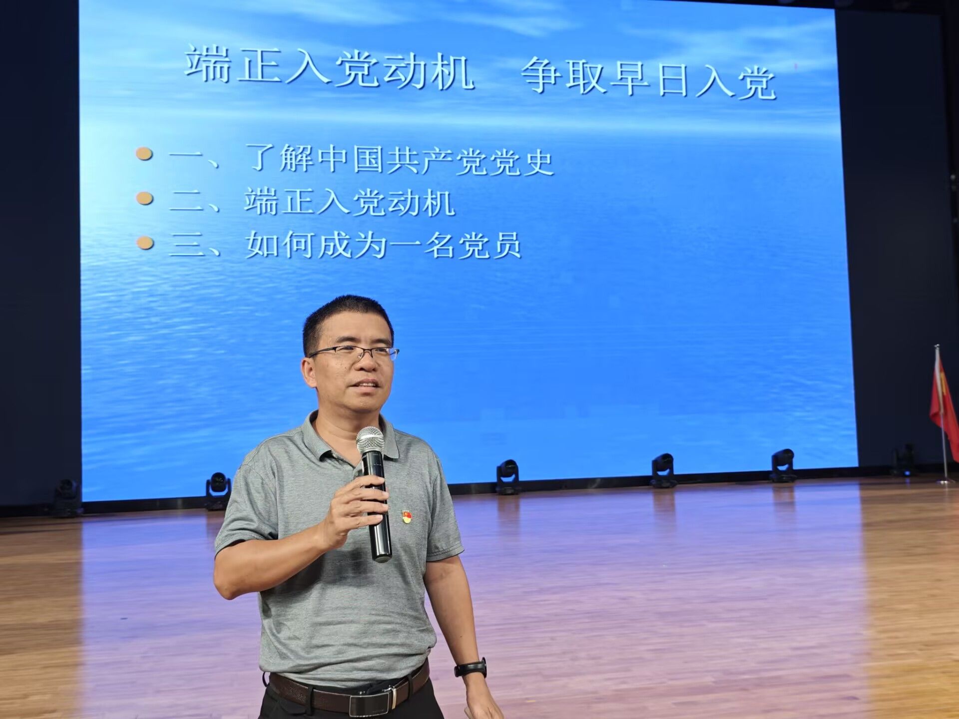 党课中,王卫彬副书记深入阐释了正确的入党动机是成为合格党员的首要前提。他指出,正确的入党动机应包含为共产主义和中国特色社会主义事业奋斗终身的坚定信念、全心全意为人民服务的思想,以及在工作、学习和生活中发挥先锋模范作用的觉悟,并提醒同学们入党动机的端正是一个持续一生的过程。