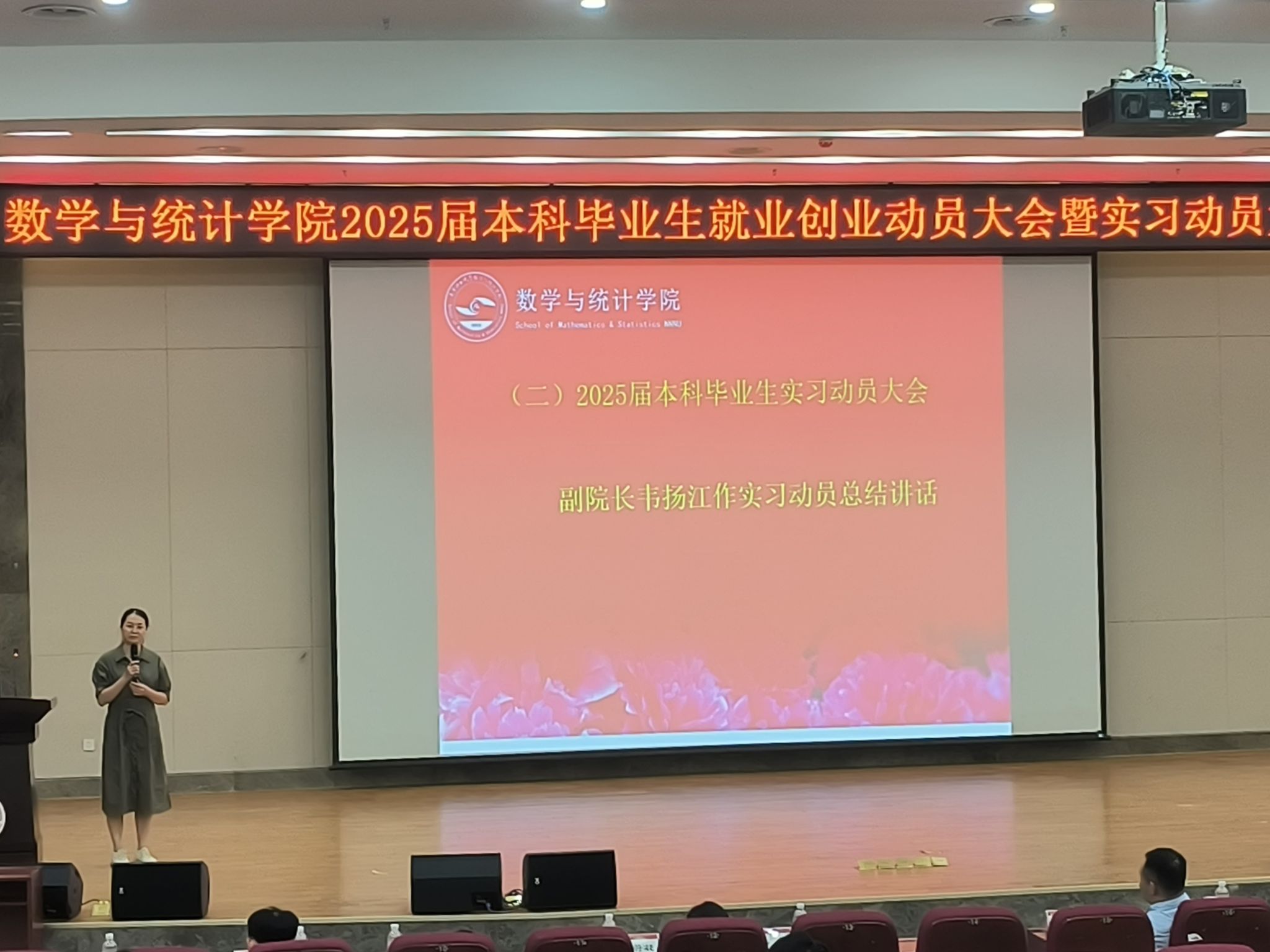 开展2025届本科毕业生实习动员大会,该院党委付进副书记、韦扬江副院长、全体辅导员及2025届本科毕业生共300余人参加此次大会。