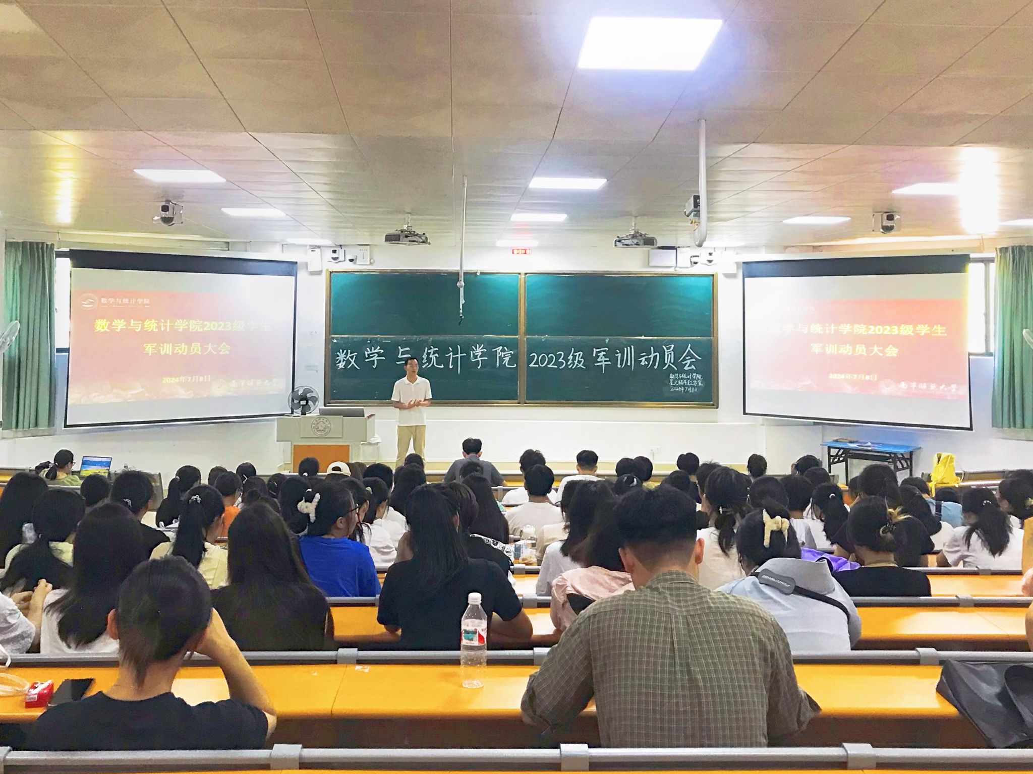 于武1-114教室召开了2023级学生军训动员大会。该院辅导员梁卡霖老师、第生辉老师、何振飞老师及2023级各班学生干部参加本次会议。
