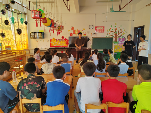 “澎湃·朋π”实践服务队在南宁市武鸣区马头镇中心学校的会议室开展暑期“七彩课堂”开班仪式,并随即启动了“七彩课堂”培训班第一讲。实践队员和学员们共同参加了开班仪式。
