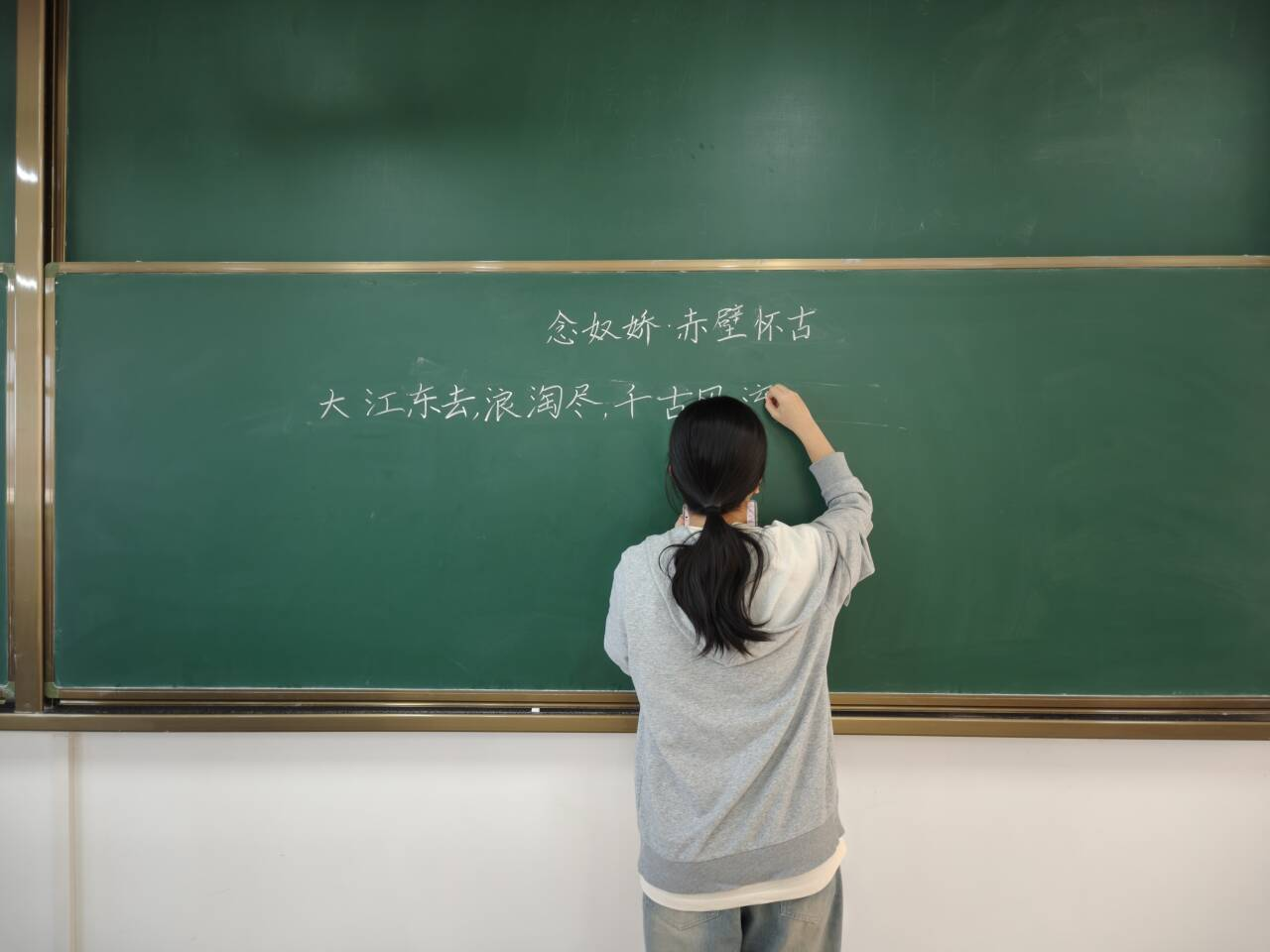 本次比赛的前期筹备工作十分充分,组织有序、安排周密,经过多轮初赛的严格选拔,最终有30位优秀选手脱颖而出,成功晋级到决赛环节。决赛现场气氛庄重而专注,每一位参赛者都全神贯注、沉着应战:笔落墨痕藏险峻,参加毛笔字比赛的选手们铺开宣纸,细心调墨、润笔,笔锋流转之间充分展现出欧体书法特有的险峻与劲健;指尖粉笔起落有序,粉笔字比赛选手则在各自的黑板前凝神书写《念奴娇·赤壁怀古》,每一笔都利落舒展,整体版面整洁美观,精心制作一幅幅富有文化底蕴的作品;腕间力道沉稳精准,钢笔字比赛选手们于方格纸上一笔一画认真抄录指定内容,字迹灵动而不失力度,笔触透纸,风格各异,各具特色。