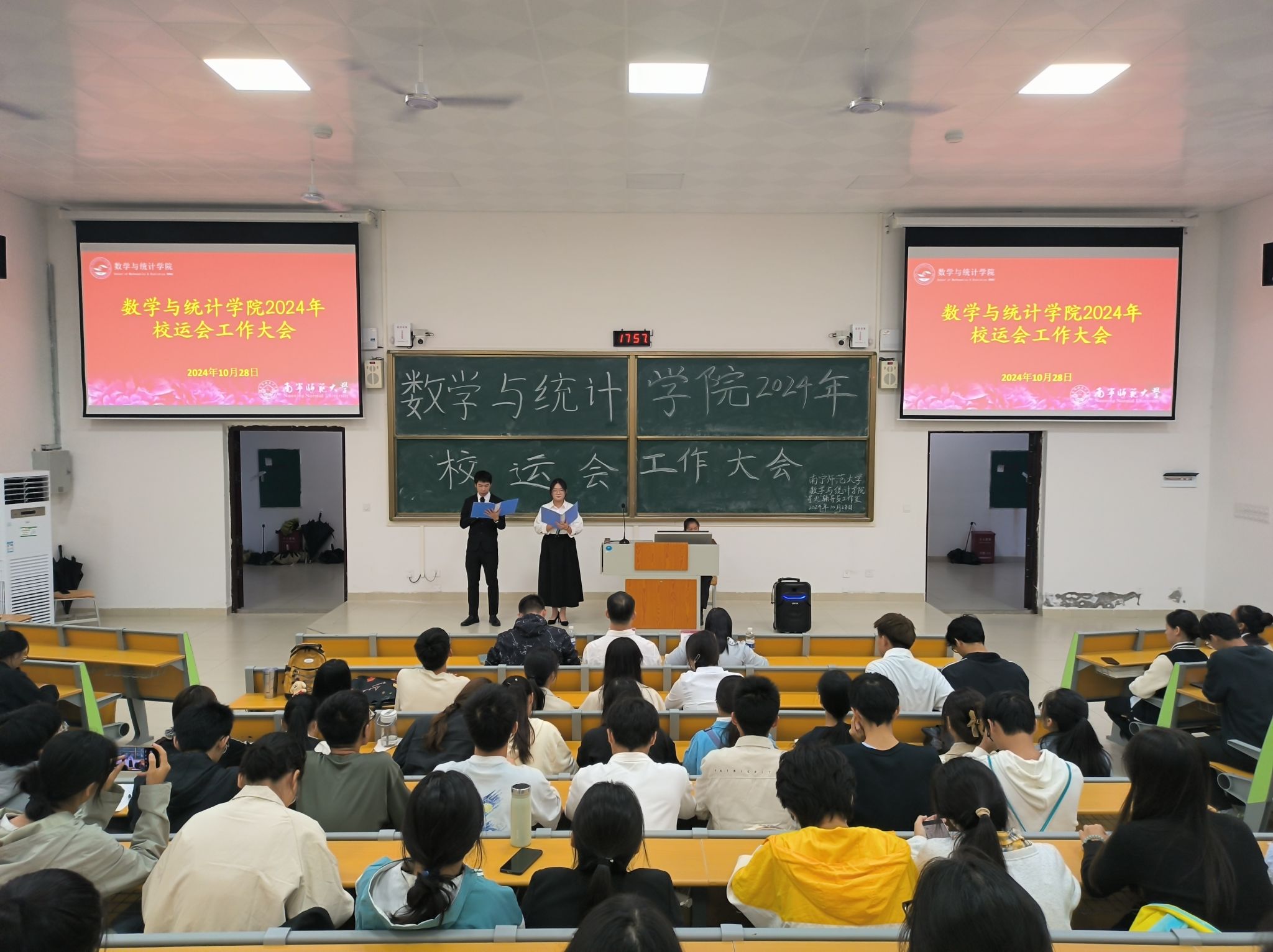 于10月28日晚在实验1-B113教室召开2024年校运会工作大会。学院党委付进副书记、辅导员梁卡霖老师、何振飞老师、全体运动员以及各班体育委员参加了本次会议。