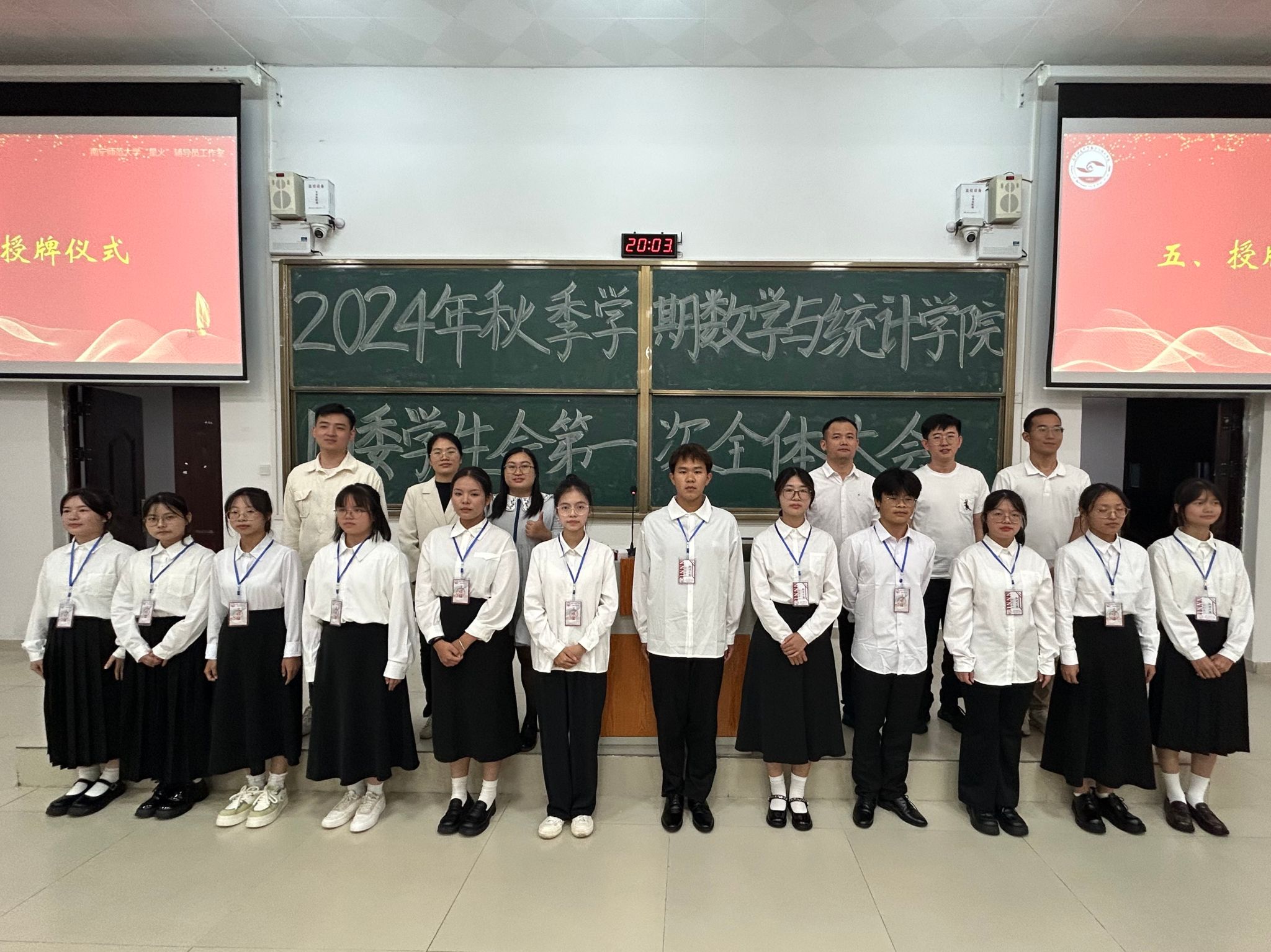 会上,学院领导、老师们还为成员代表颁授工作牌。