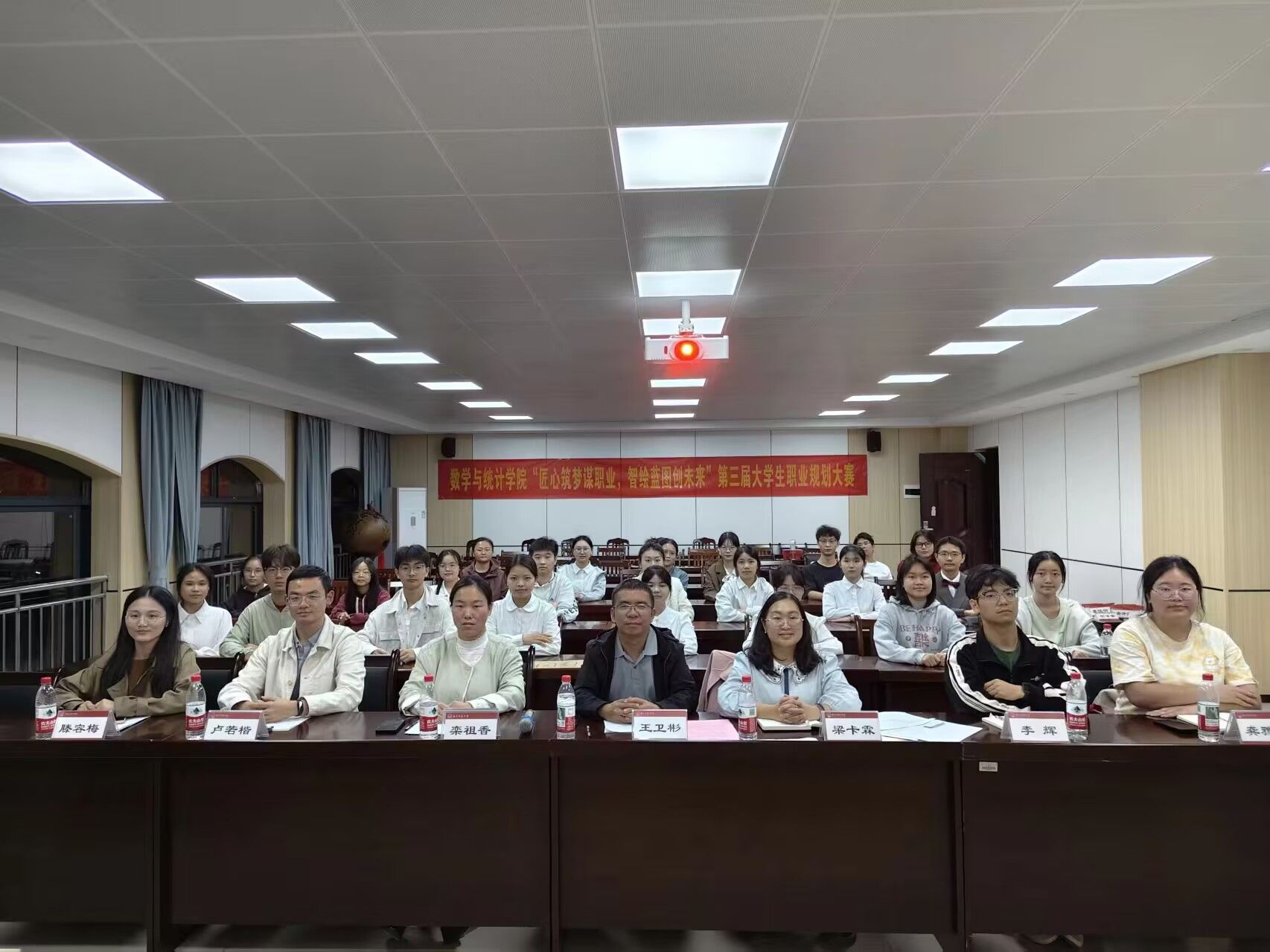 比赛由张宗权同学主持,王卫彬副书记为大赛致辞,强调职业规划对学生成长与就业的重要性。比赛环节中,选手们围绕赛道要求,结合专业特色展示职业规划方案:低年级选手聚焦“成长路径与能力储备”,高年级选手侧重“求职实战与岗位适配”,展现数统学子在教育、金融数据分析等领域的职业潜力。比赛过程中,1-17号选手依次登台展示,评委从“目标匹配度”“路径可行性”等维度打分。