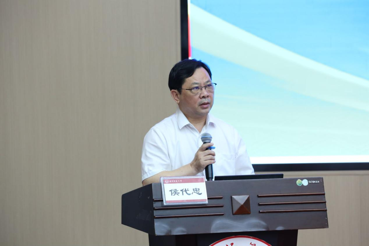 党委副书记侯代忠在致辞中简要介绍了学校及数统学院发展情况,并作为广西数学会数学教育分会理事长发表讲话,指出成立数学教育分会的主要目的就是为了加强数学教育教学研究,促进数学教学方法和数学课程改革,为增进区内外数学教育同行的交流与合作搭建优质平台。他提出了三点意见:重视数学素养、重视数学创新、重视数学联动;期望广西数学会数学教育分会能在数学人才培养、数学教学实践、数学文化普及推广、数学教育东盟国际合作等方面,多谋划、广布局,吸收更多的数学教师成为理事,加强数学教育分会各理事单位的交流与合作,使广大数学教师、教育工作者受益,使更多的学生理解数学、喜爱数学。