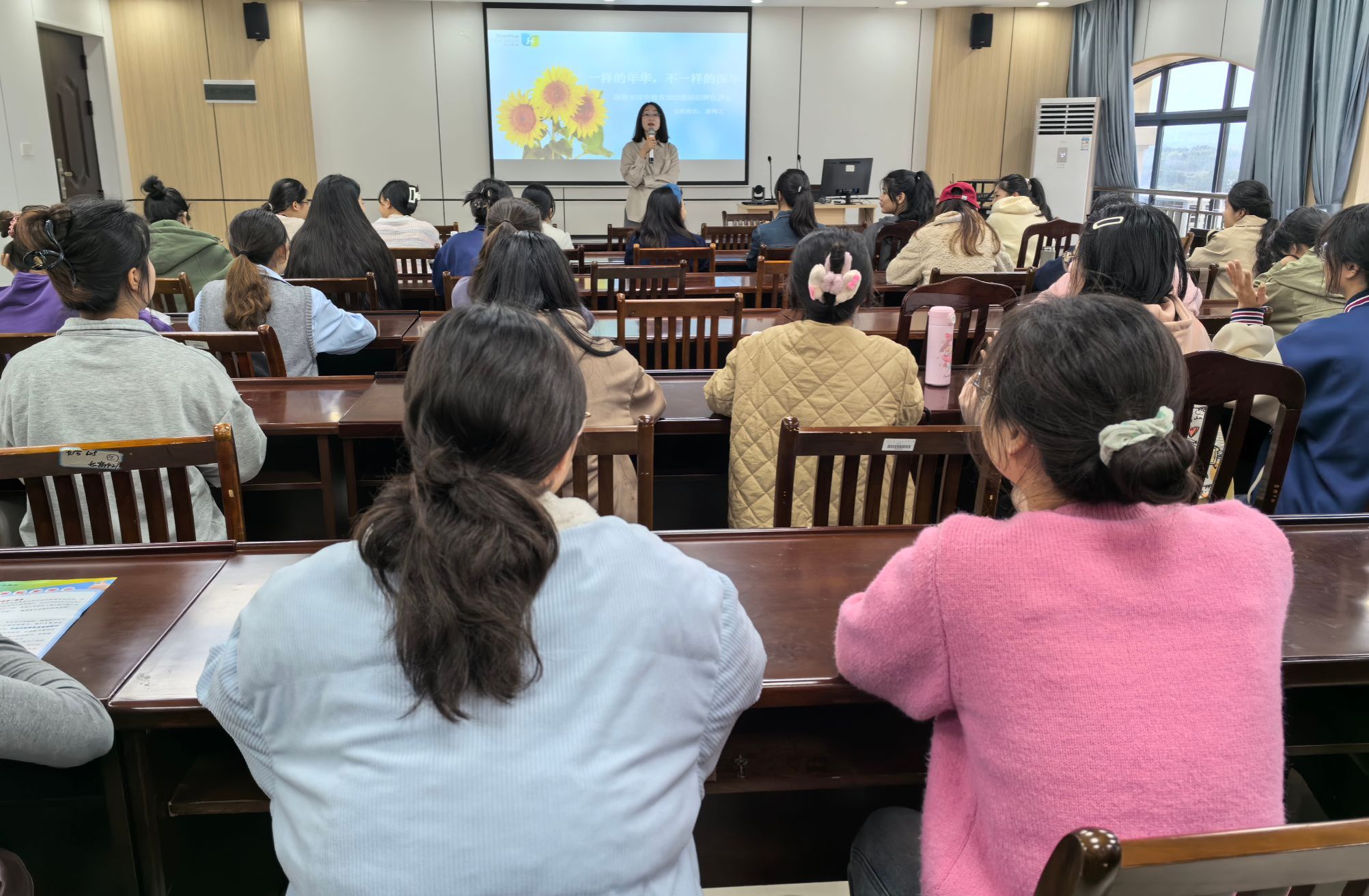 招聘会上,来自教育发展有限公司唐校长详细介绍了深华教育的基本情况,包括深华教育面向的区域、领域和生源,同时还有经营模式和招聘需求等内容。宣讲结束后,毕业生们踊跃提问,唐老师针对同学们关心的工作内容、职业发展路径、薪资待遇等问题,逐一耐心解答,现场交流氛围热烈。付进鼓励毕业生积极尝试,他强调,就业是人生重要转折点,深华教育首次来到学院开展专场招聘,同学们应把握机会,积极投递简历、参与面试,展现自身优势,在求职中不断提升自我、突破自我。