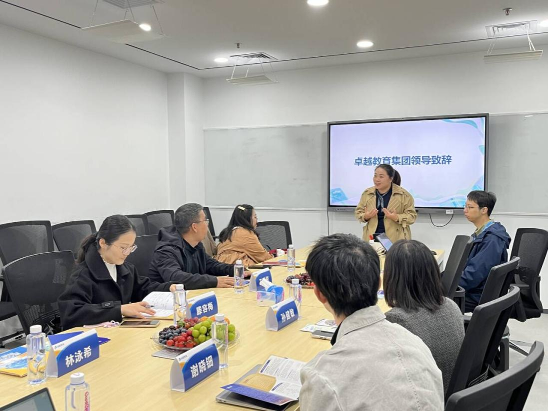 的老师同学们表示欢迎,并介绍集团发展与校区优势,希望能有更多来自母校的学弟学妹加入卓越教育集团;王卫彬副书记详述学校办学特色、学院学科建设及毕业生情况,期待深化合作;校招高级招聘管理师车力行讲解集团发展、员工培养体系,重点介绍素质教育实践与线上AI教学成果。