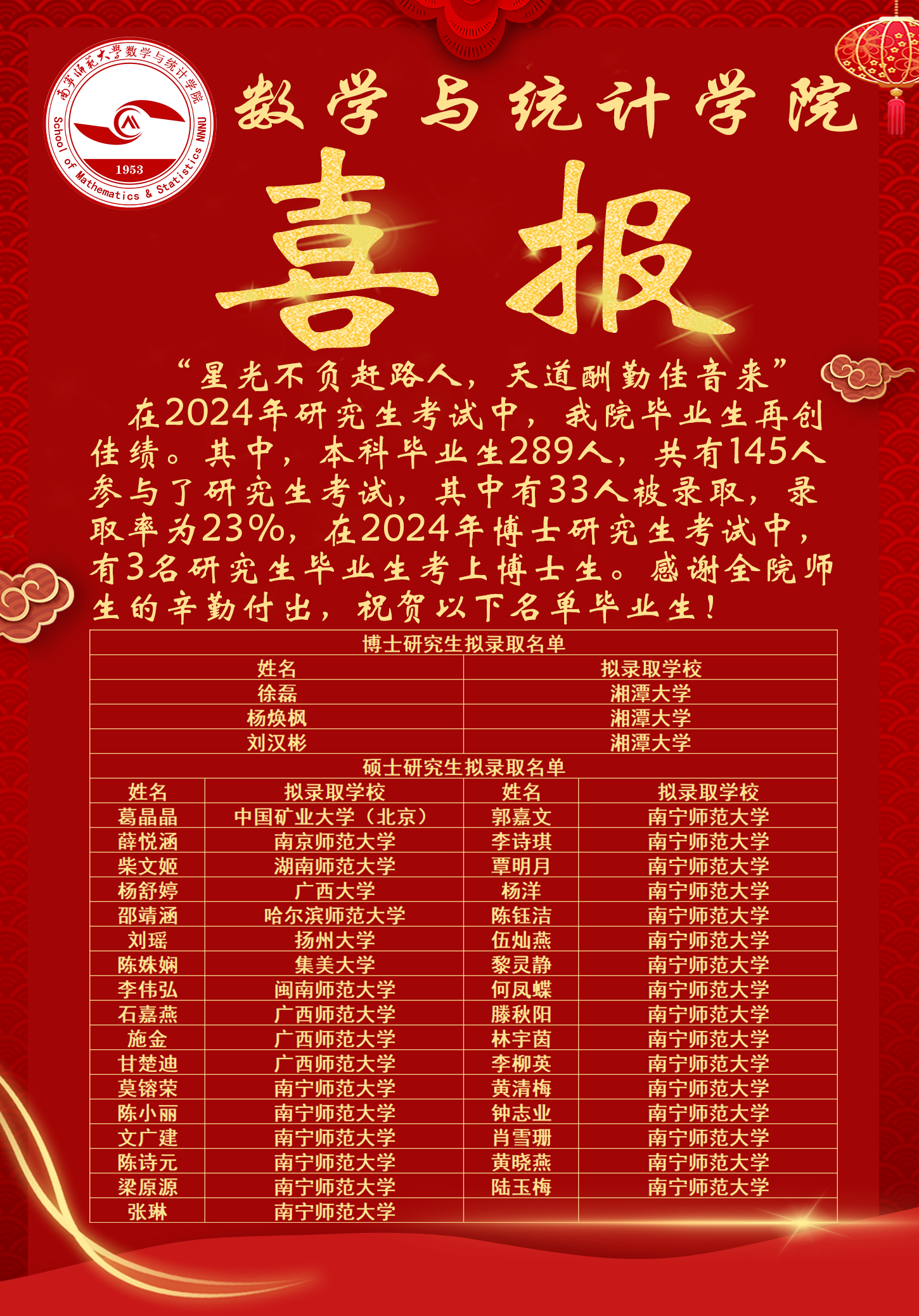 喜报丨热烈祝贺 girsway 33名学子考研成功!
