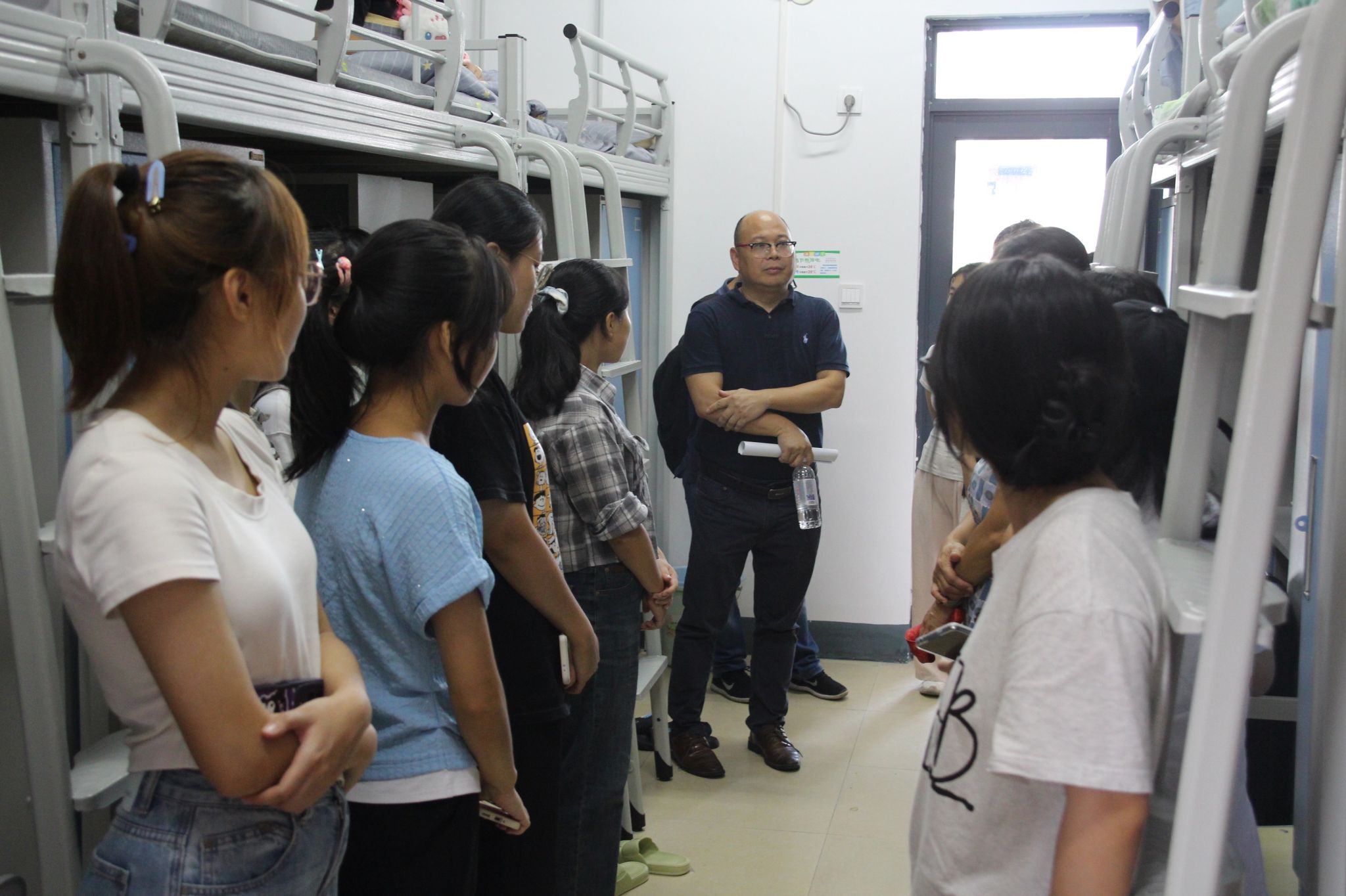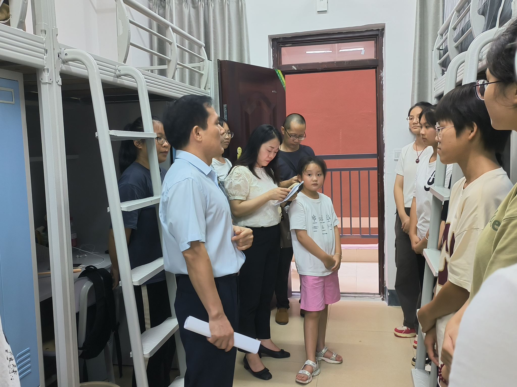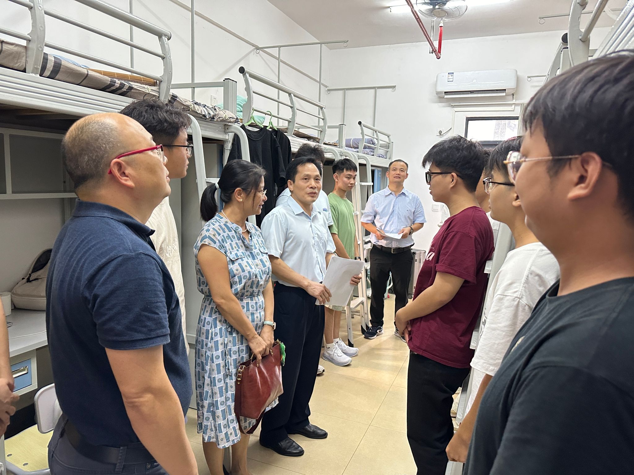 党委余敢才书记、黄在堂院长、付进副书记、韦扬江副院长带领全体辅导员、2024级各班班主任及助理班主任对新生宿舍进行了走访。