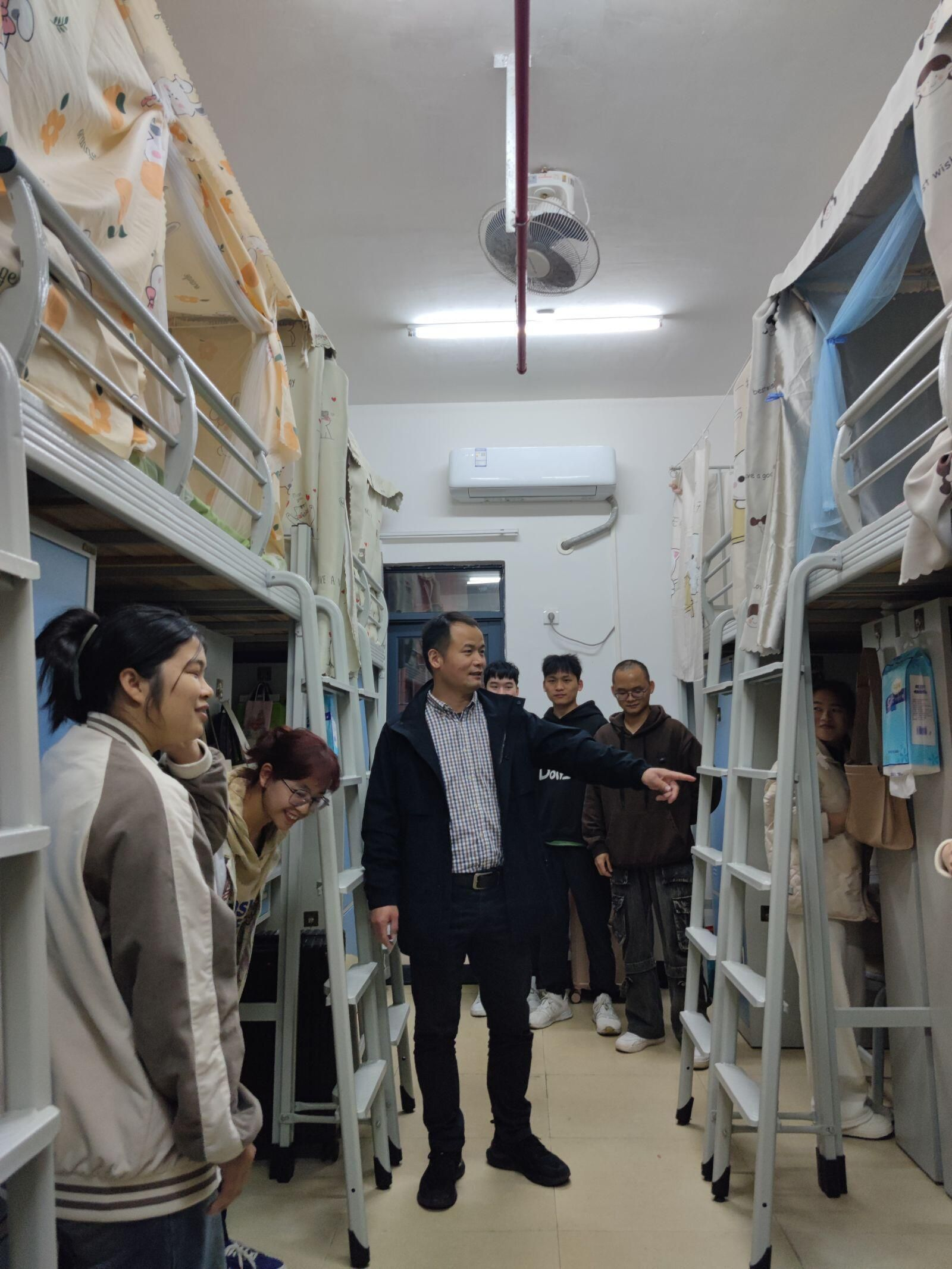 在走访中,付进副书记与同学们亲切地交流,询问了大家假期收获以及新学期的展望,付进副书记对宿舍安全问题着重强调,他指出,宿舍要严格遵守学校学生公寓管理办法及各项规定,注意用电安全,宿舍要保持干净整洁,对于宿舍中存在的安全隐患要集中排查整改,要求大家要掌握好基本的消防安全知识和技能,共同营造安全、和谐、文明的宿舍环境;他还就加强反诈防骗意识进行强调,提醒同学们要时刻绷紧安全防线,提高个人安全防范意识。老师们还与同学们就生活学习中的实际问题进行了交流,叮嘱同学们及时调整状态,保持积极向上的心态,建立良好的宿舍人际关系,努力学习,不负时光。