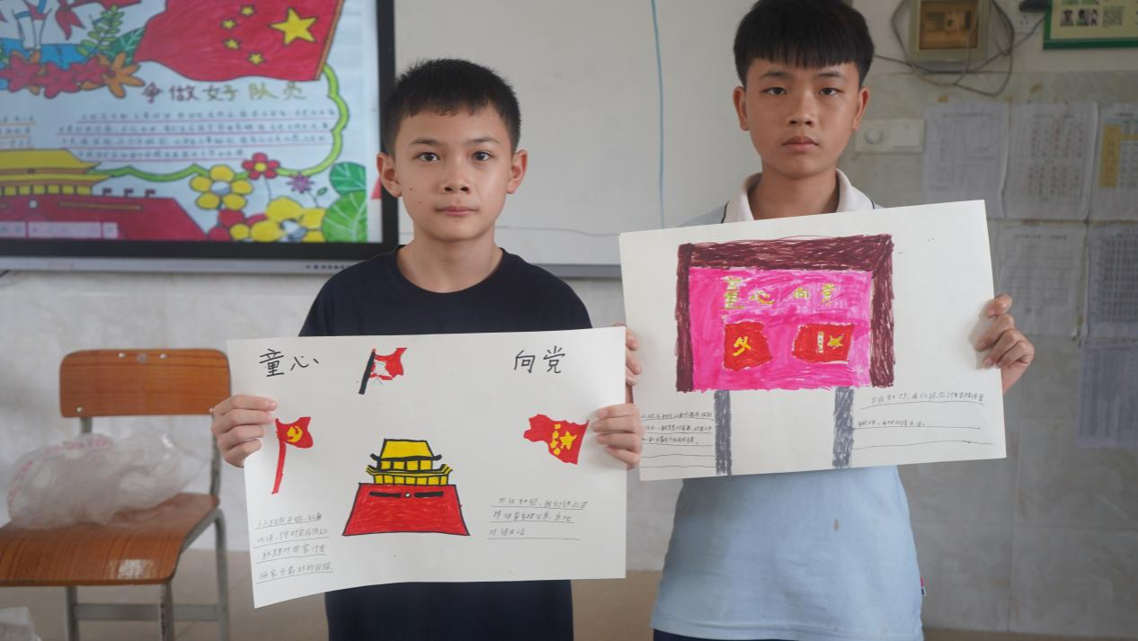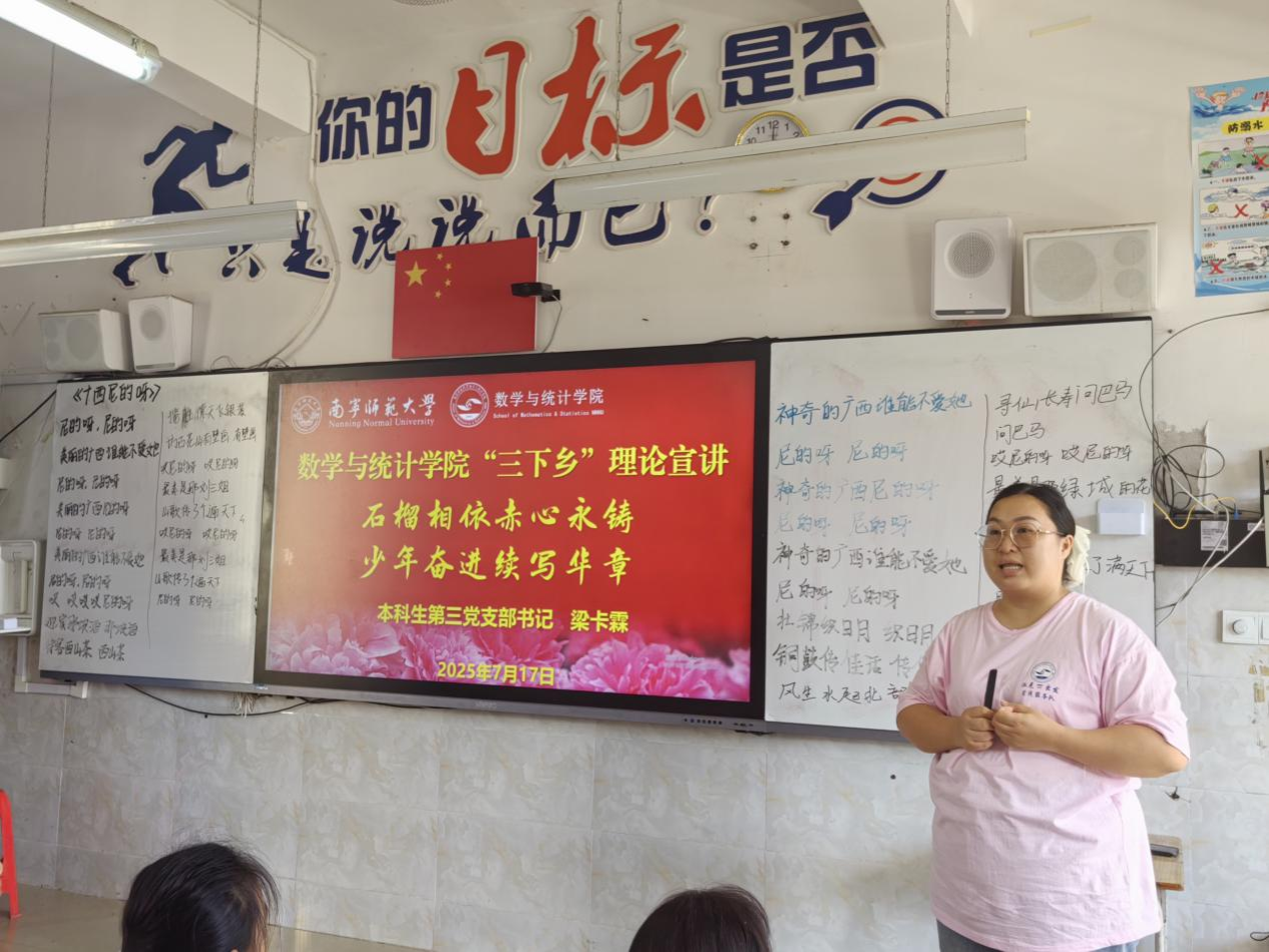 “派克・π出发”实践服务队在广西崇左市宁明县那楠乡那楠中心小学,开展理论宣讲活动,让红色种子扎根童心。