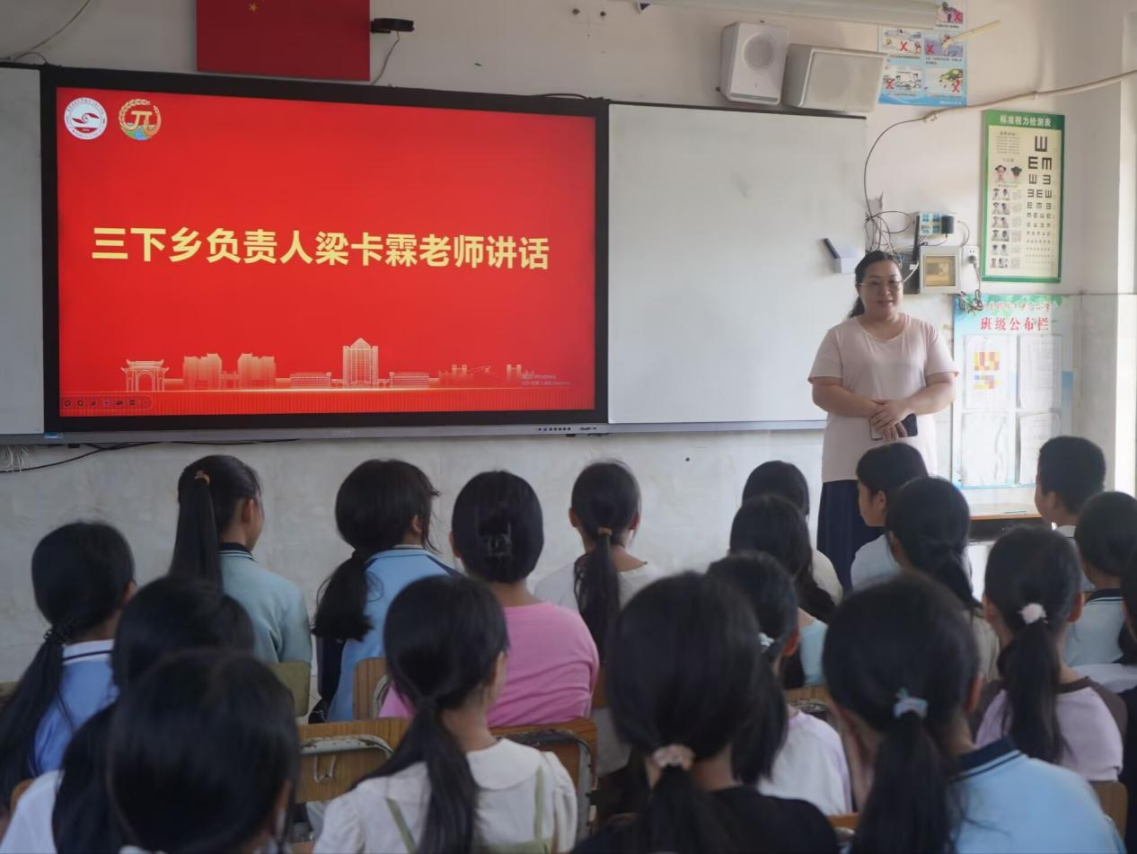 校园文化视频,让小学生们直观感受大学的学术氛围与青春活力,在心中播下“逐梦大学”的种子。带队老师梁卡霖详细介绍了活动安排:本次实践围绕“卫国戍边”的主题,通过“七彩课堂”、趣味运动会、文艺汇演、理论宣讲等形式,为小学生们讲授有趣的数学知识、边境安全常识,红色经典知识,助力小学生们在轻松的氛围中实现全面发展。
