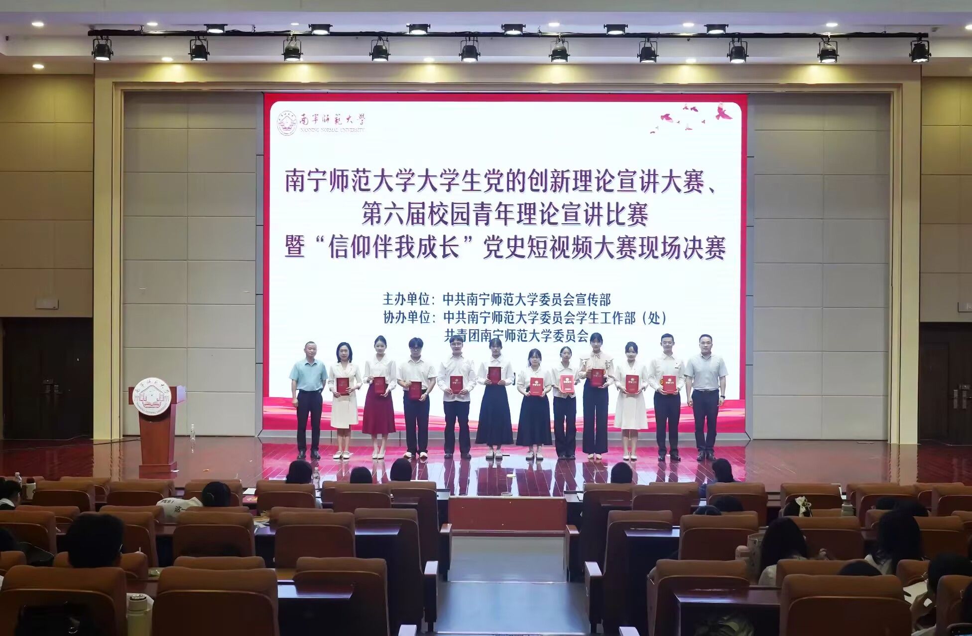 近日, girsway 大学生党的创新理论宣讲大赛、第六届校园青年理论宣讲比赛暨“信仰伴我成长”党史短视频大赛现场决赛圆满落幕。 girsway 辅导员卢若楷凭借《以青春之我,筑命运与共之桥》主题宣讲斩获三等奖,其将历史记忆、广西实践与青年担当深度融合的宣讲内容,不仅展现个人扎实的理论素养与育人情怀,更成为学院深耕思政引领、强化辅导员队伍建设的生动缩影。