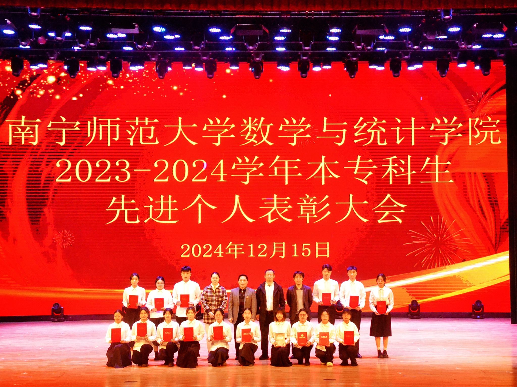 于12月15日在千人演播厅顺利召开2023-2024学年本专科生先进个人表彰大会。学院领导班子、老师代表、兼职辅导员、团委学生会常委代表、2022级-2023级学生代表以及2024级全体同学参加了本次会议。