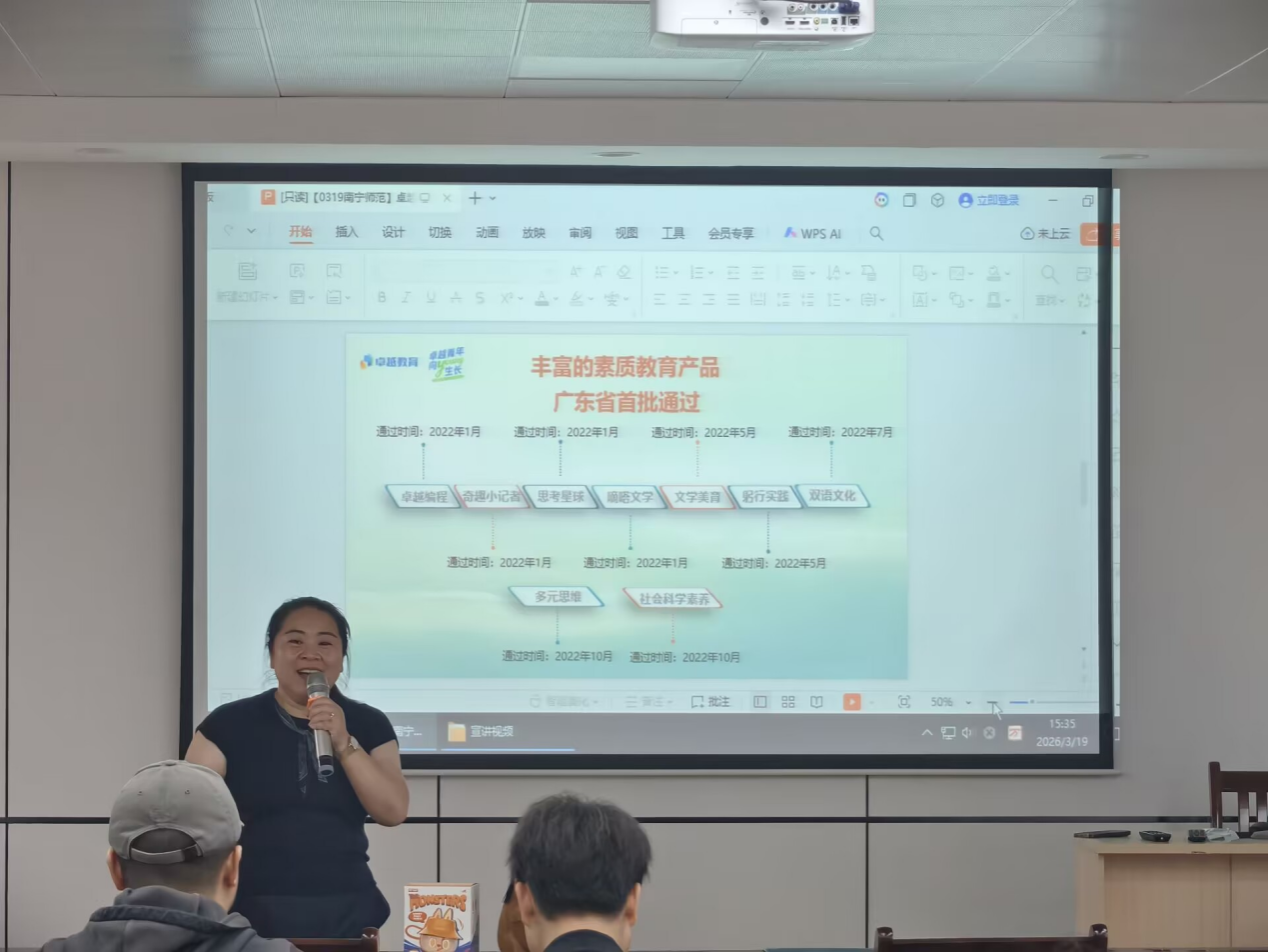 优秀校友、卓越教育集团区域经理伍金玲校长向在场学子详细介绍了集团发展概况。她表示,集团始终高度重视高素质人才的引进与培养,以教育为核心,业务布局已拓展至编程、人工智能研发等前沿科技领域。随后,卓越教育集团招聘经理车力行先生为同学们发放定制礼品,并组织抽奖互动环节,现场氛围轻松愉悦,有效缓解了毕业生求职压力。