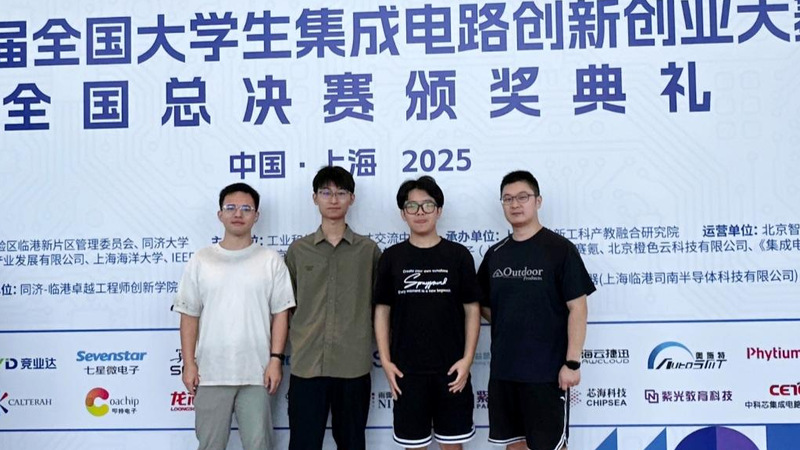 2025年8月24日,第九届全国大学生集成电路创新创业大赛(以下简称“集创赛”) 全国总决赛在上海临港新片区圆满落幕。经过线上初赛、华东赛区复赛和全国总决赛三级选拔,我院学子在本届大赛中斩获全国一等奖3项、二等奖1项、三等奖4项,并获得“算能杯”企业大奖。南京大学荣获大赛“优秀组织奖”。