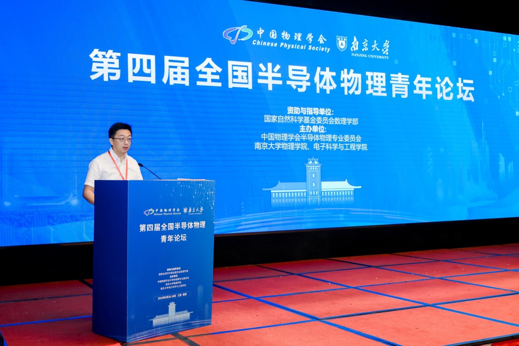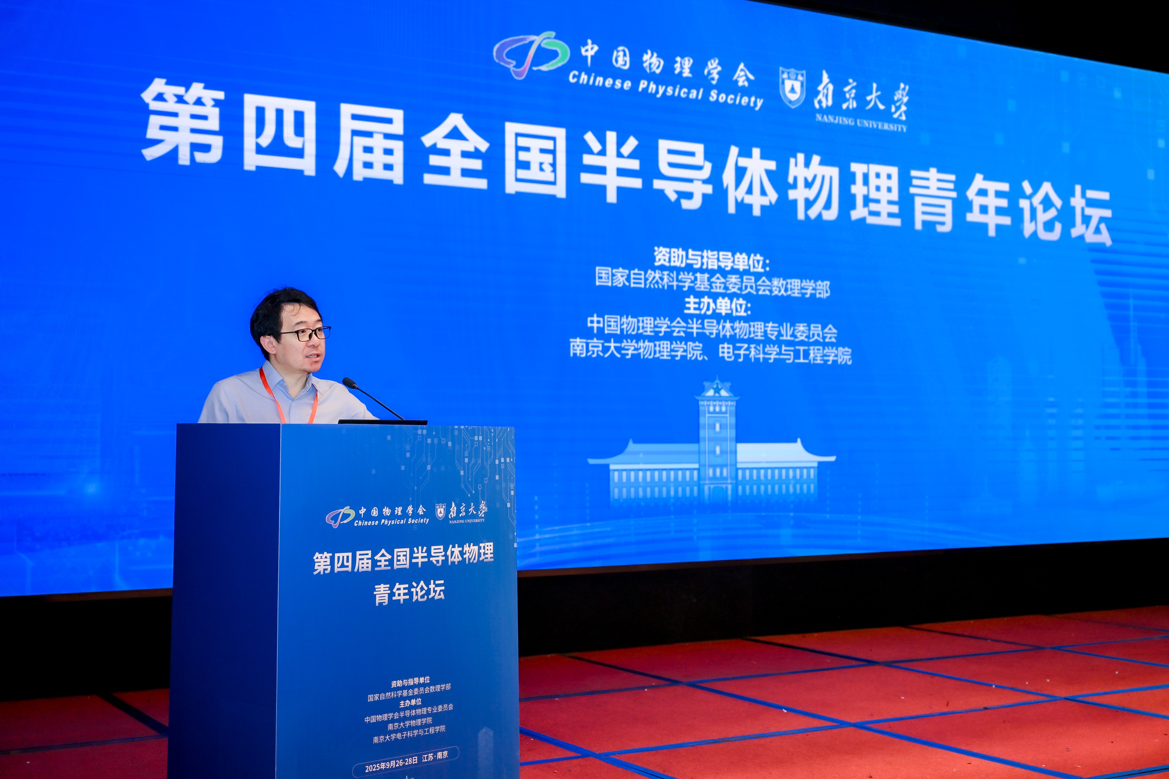 2025年9月26日至28日,第四届全国半导体物理青年论坛在江苏省南京市成功举办。本届论坛由国家自然科学基金委员会数理学部资助并指导,中国物理学会半导体物理专业委员会、南京大学物理学院及电子科学与工程学院共同主办。来自全国50余所高校和科研院所的200余位专家学者与青年研究人员参加了本次论坛,围绕半导体物理的前沿科学问题、技术创新及未来发展趋势进行了深入交流。