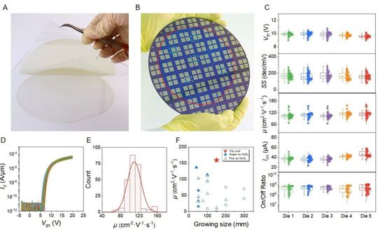 然而,二维半导体长期难以走出实验室。实验室级别的化学气相沉积(CVD)技术在晶圆尺寸、重复性和均一性等方面难以满足产业需求,而金属有机化学气相沉积(MOCVD)技术虽然具备均匀性和规模化优势,但只能生产多晶材料,无法满足高端元器件需求。形象地说,单晶就像高速公路,电子在上面可以快速通行;多晶不仅是小路,而且有很多红绿灯,电子没走几步就得减速、拐弯甚至堵车,器件性能自然欠佳。