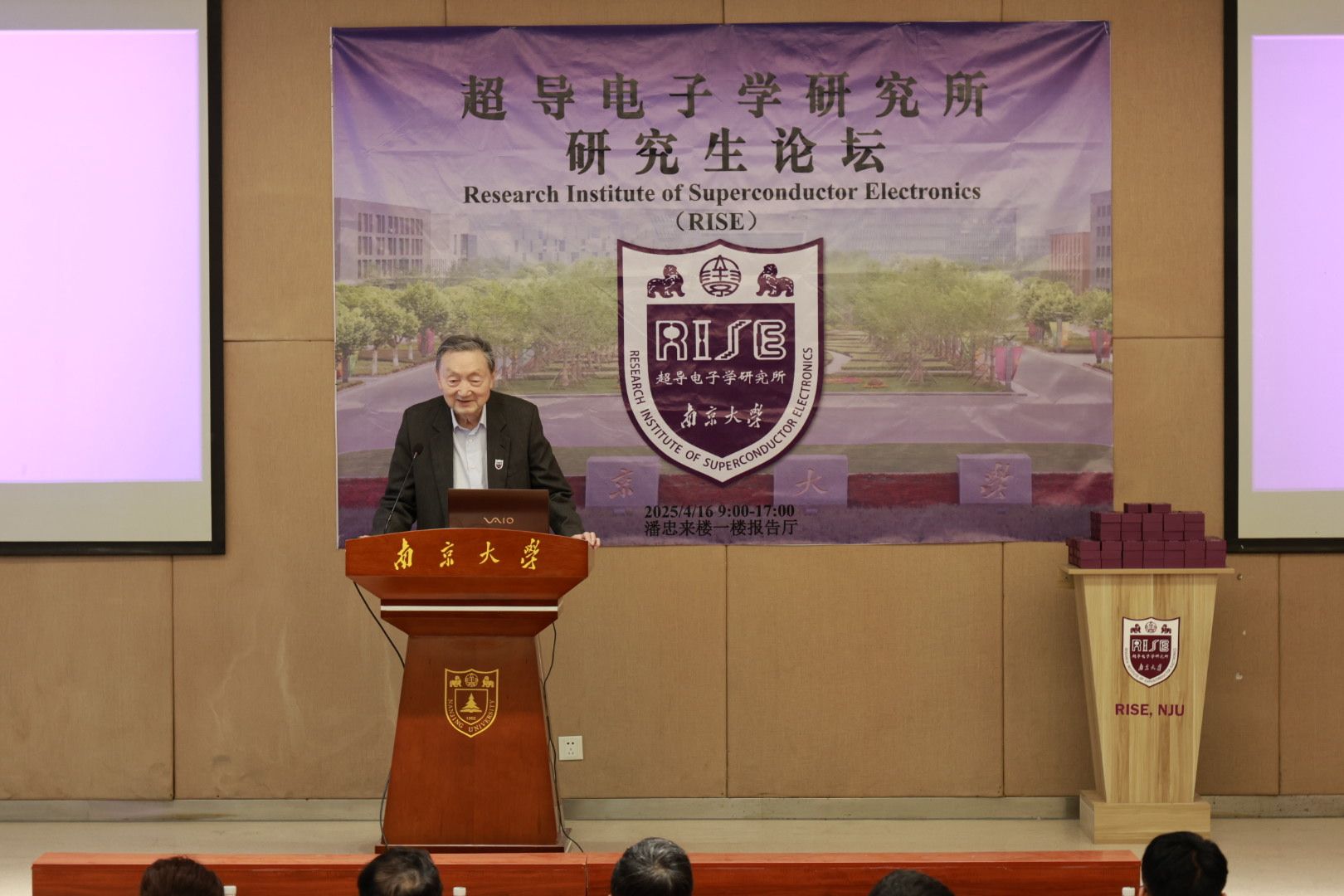 季春时节,万物并秀。伴随着葱郁的树木和鲜艳的繁花,我院电子工程系党支部联合超导电子学研究所(英文缩写为“RISE”)于4月16日在电子楼报告厅举办第三届超导电子学研究所研究生学术论坛,该论坛也是南京大学“第五届研究生学术科技节”活动之一,超导电子学研究所师生 150余人参会。中国科学院院士吴培亨,学院党委书记张昊、院长刘斌等出席开幕式,论坛由超导电子学研究所所长王华兵教授主持。