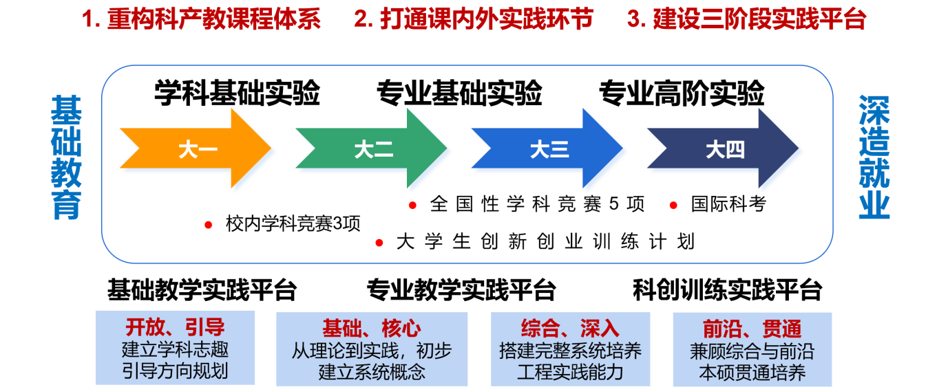 南京大学电子信息专业国家级实验教学示范中心依托自身优质实验资源,聚焦人才培养中实践教学痛点,开展了系统性的实践教学改革。该成果通过三大核心举措构建协同育人实践教学体系:一是重构跨学段实验课程体系,将实验课程科学划分为学科基础、专业基础和专业高阶三个层次分类建设,形成循序渐进的课程培养链条;二是突破传统育人模式中课程、竞赛、科创实践环节相互割裂的局限,构建“实验课程-学科竞赛-科创训练”的协同机制,使课程、竞赛、科创三者相互渗透,形成螺旋上升的育人闭环;三是建设层次化实践教学平台,打造基础教学、专业教学和科创训练三大平台,通过科产教融合育人模式,显著提升学生实践能力和创新能力,为电子信息领域高素质创新人才培养提供了可复制、可推广的实践范式。
