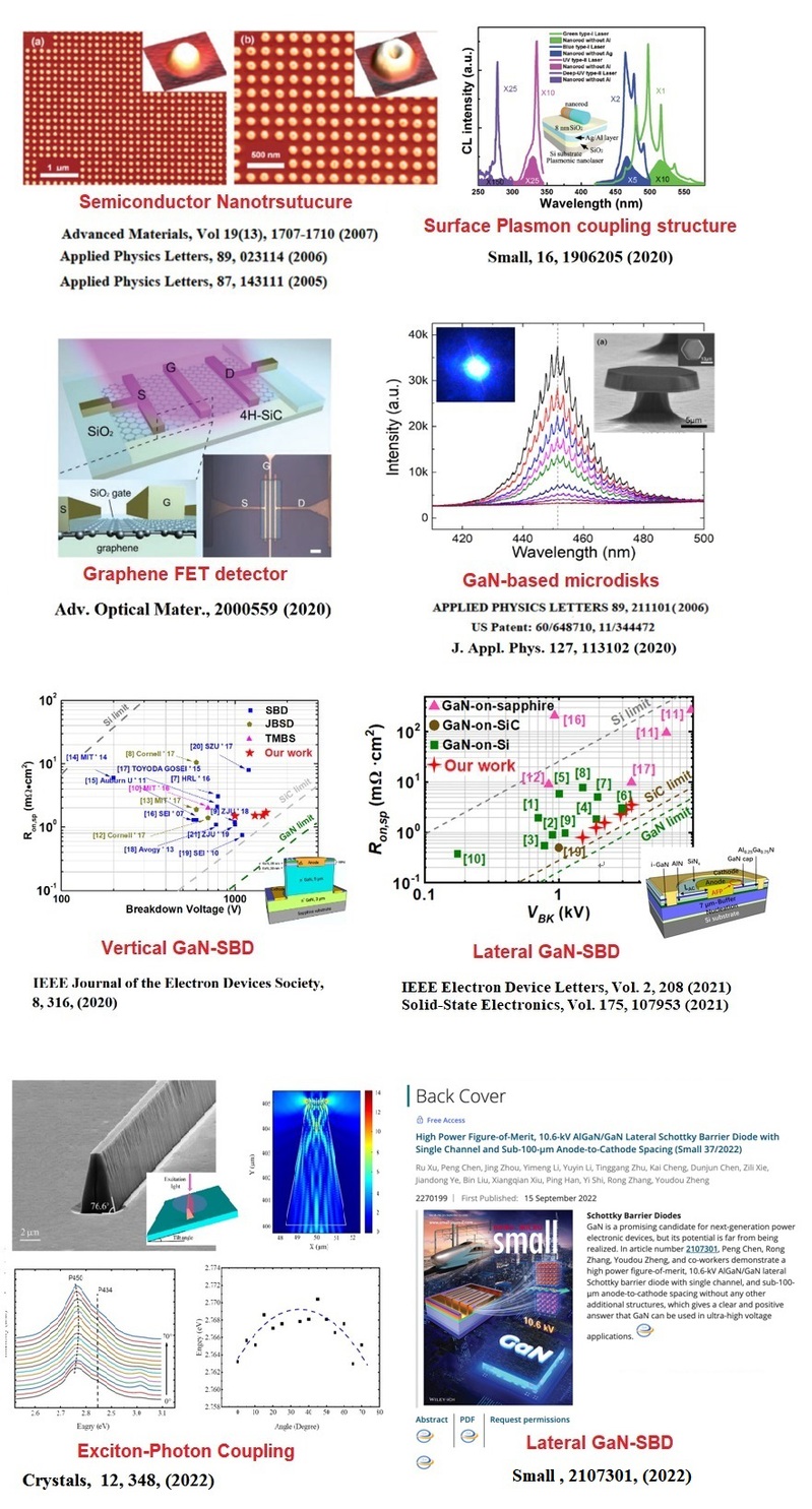 1. 半导体微纳结构的半导体光电子学与等离激元光子学研究; 2. 氮化物半导体的固体电子学与功率电子器件研究; 3. Si衬底上的氮化物半导体材料与光电子学研究; 4. 半导体的固态照明技术研究; 5. GaN自支撑衬底同质外延技术及其器件研究。 主要课程